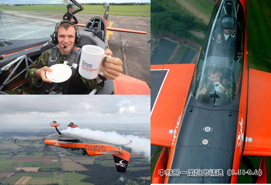 9月3日,英國皇家空軍考斯福德基地,空軍現(xiàn)役軍人StewartHefti與刀鋒飛行表演隊(duì)進(jìn)行了一場(chǎng)特技表演。圖片來源:中國網(wǎng)