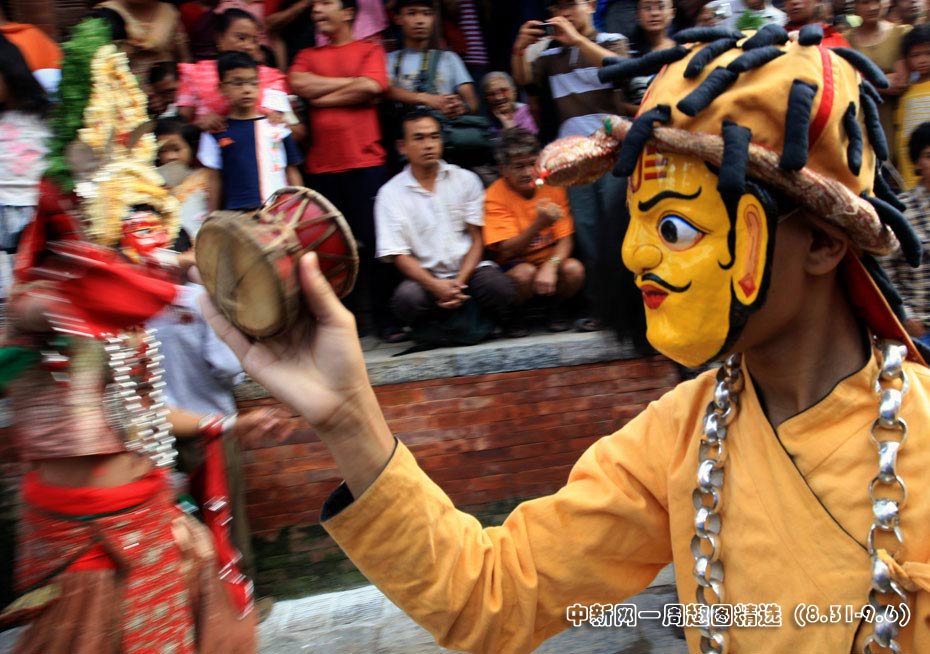9月1日,尼泊爾加德滿都因陀羅節(jié)盛大開幕,人們戴上傳統(tǒng)的面具跳舞,熱烈的慶祝活動將持續(xù)多天。圖片來源:中國新聞網(wǎng)
