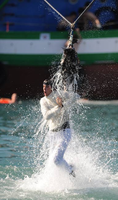 9月6日,西班牙巴斯克地區(qū)舉行傳統(tǒng)“鵝日”活動。人們用繩子將一些死鵝吊在空中,狂歡者跳起猛扯鵝頭,看誰能取下。