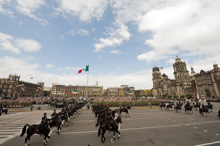 9月16日,墨西哥慶祝獨(dú)立199周年,在首都墨西哥城的憲法廣場舉行了盛大的閱兵式。來源:中國新聞網(wǎng)