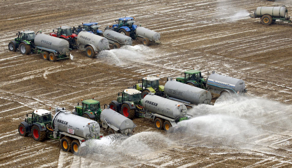 16日,比利時奶農(nóng)向地里傾倒了3百萬升鮮牛奶做“農(nóng)肥”,抗議奶價暴跌。奶農(nóng)們認為,提高牛奶生產(chǎn)配額造成歐盟市場上奶制品供大于求,進而引發(fā)價格暴跌。來源:中國新聞網(wǎng)