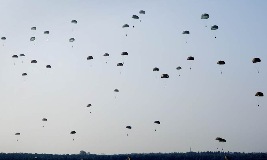 9月19日,英國空降兵在荷蘭埃德附近進行傘降表演,紀念二戰(zhàn)期間盟軍最大規(guī)模的空降作戰(zhàn)——“市場花園”行動65周年。