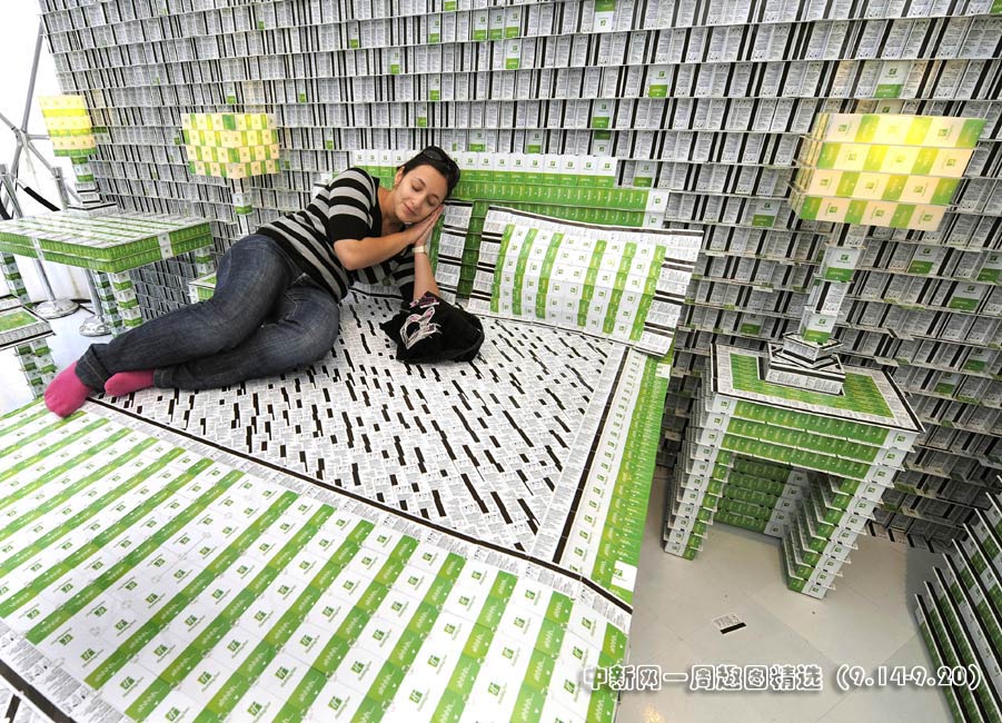 9月17日,在美國紐約,一位名叫布賴恩的設計師展示他利用房門卡設計的客房。圖片來源:中國新聞網(wǎng)