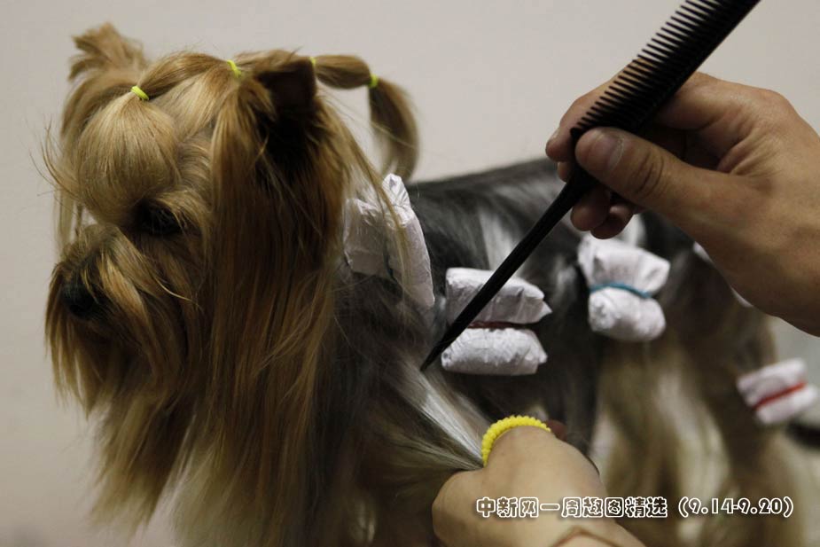 當(dāng)?shù)貢r(shí)間9月17日,在墨西哥首都墨西哥城舉行了2009國際小狗競(jìng)選大賽。眾多參賽的小狗紛紛“梳妝打扮”準(zhǔn)備參加國際小狗競(jìng)選。圖片來源:中國新聞網(wǎng)