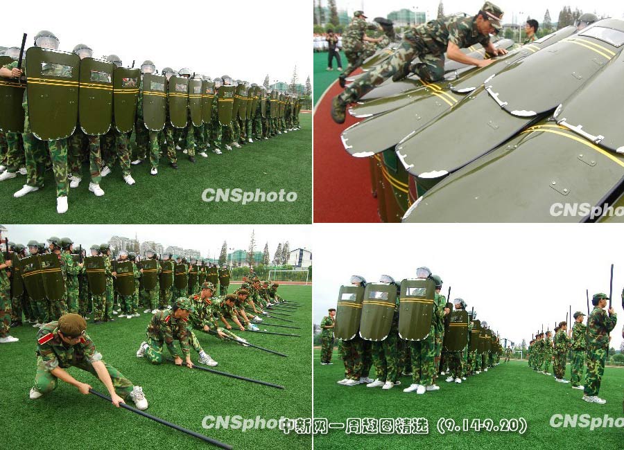 9月18日,江蘇省揚州大學廣陵學院新生軍訓(xùn)拉開序幕。與往年不同的是,該校今年軍訓(xùn)增加了反恐防暴。圖片來源:中國新聞網(wǎng)