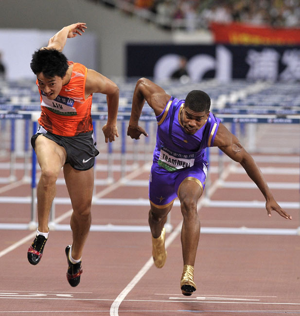在20日晚進行的上海田徑大獎賽的男子110米欄的比賽中,劉翔時隔13個月后重返賽場,并跑出13秒15的成績。美國名將特拉梅爾以13秒15的同樣成績、近乎為零的優(yōu)勢奪走冠軍。來源:中國新聞網(wǎng)
