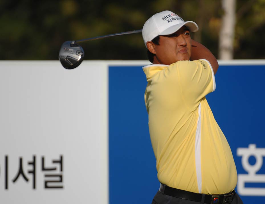 2009“韓國(guó)KEB銀行”中韓職業(yè)高爾夫球巡回賽韓國(guó)站于今天在韓國(guó)OSTAR高爾夫球俱樂部正式開桿,有47名球員代表中國(guó)參賽。圖為選手們上場(chǎng)第一天,揮桿開打的場(chǎng)面。
