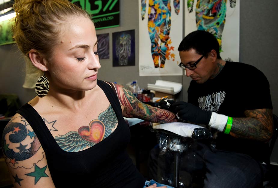 當?shù)貢r間9月25日,國際紋身大會在英國倫敦舉行,來自美國、加拿大、澳大利亞、英國、日本等國的紋身高手紛紛到此獻藝。