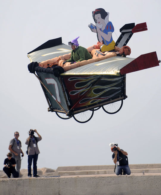 9月27日,法國馬賽趣味飛行器大賽舉行。比賽規(guī)則簡單,誰能在落水之前飛得更遠(yuǎn)誰就是冠軍,但參賽選手絞盡腦汁,把自己的飛行器扮成各種古怪摸樣。圖片來源:中國新聞網(wǎng)