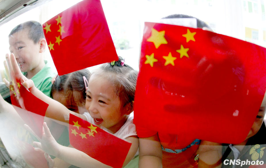 9月17日,在江蘇省無錫市僑誼實(shí)驗(yàn)幼兒園,孩子們正在教室里貼自己親手制作的五星紅旗。為迎接國(guó)慶節(jié)的到來,該校開展了一系列的紅色教育,親自動(dòng)手做一面五星紅旗更是成了第一課。 中新社發(fā) 張浩 攝