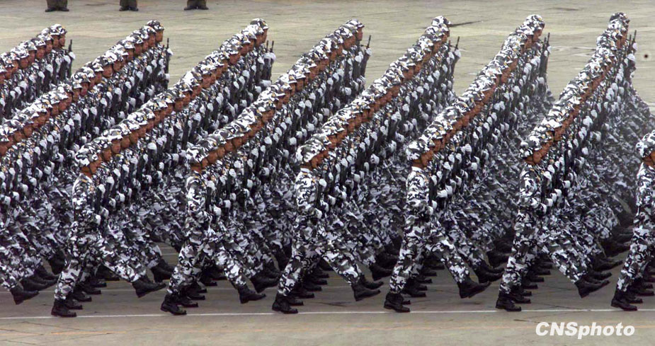 圖為1999年國慶閱兵式上海軍陸戰(zhàn)隊方隊從天安門前走過。中新社發(fā) 李剛 攝