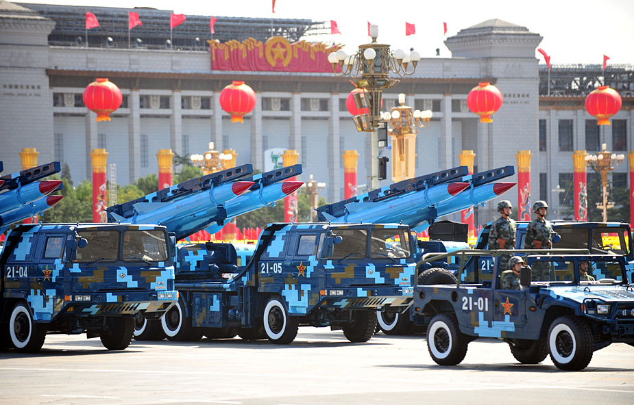 2009年10月1日,首都各界慶祝中華人民共和國成立60周年大會在北京天安門廣場隆重舉行。這是紅-12地空導(dǎo)彈方隊正在通過天安門廣場。