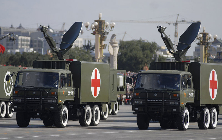 10月1日,首都各界慶祝中華人民共和國成立60周年大會在北京舉行。這是后勤裝備方隊接受檢閱。(麥田/CFP)