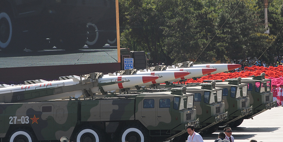 2009年10月1日,中華人民共和國成立60周年慶祝大會(huì)在北京天安門廣場(chǎng)舉行。圖為某常規(guī)導(dǎo)彈方隊(duì)。中新網(wǎng)記者 攝