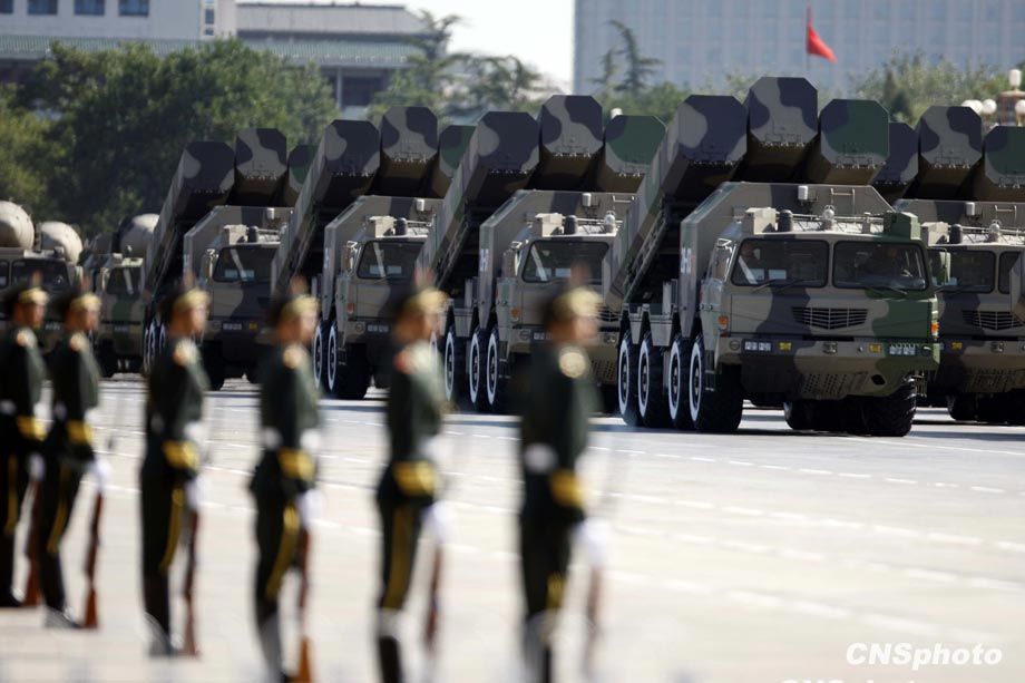 國(guó)慶60周年閱兵10月1日上午在天安門廣場(chǎng)成功舉行。由人民解放軍、武裝警察部隊(duì)和民兵預(yù)備役部隊(duì)8000余名官兵組成的受閱方陣接受檢閱。中新社發(fā) 盛佳鵬 攝