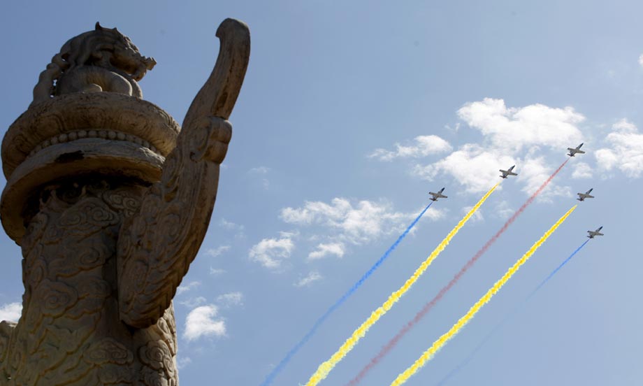 2009年10月1日,首都各界慶祝中華人民共和國(guó)成立60周年大會(huì)在北京舉行?罩蟹疥(duì)在北京上空駛過。