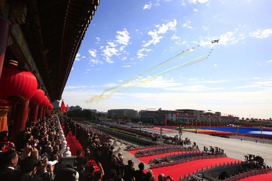 2009年10月1日,首都各界慶祝中華人民共和國(guó)成立60周年大會(huì)在北京舉行?罩蟹疥(duì)在北京上空駛過(guò)。