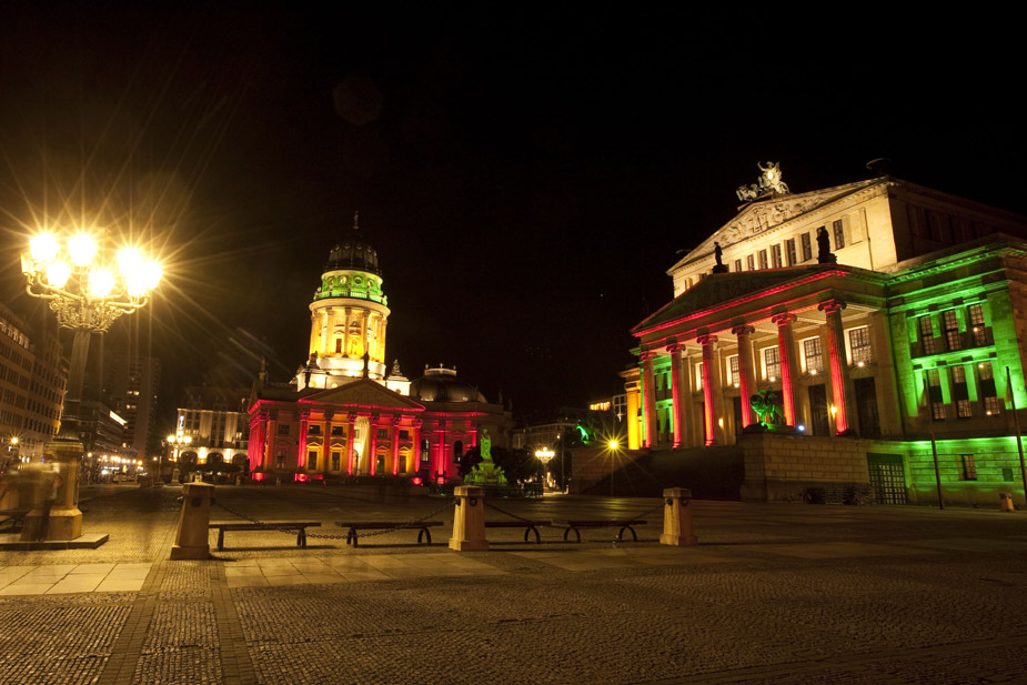 10月14日德國(guó)柏林將迎來(lái)一年一度的“燈節(jié)”。13日晚在德國(guó)首都柏林,柏林音樂(lè)廳在“燈節(jié)”預(yù)演中被五彩燈飾照亮。