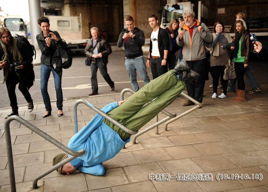 10月16日,來自奧地利的藝術(shù)家威利·多勒帶著他的城市空間人體藝術(shù)團隊,在倫敦街頭進行藝術(shù)表演。圖片來源:中國新聞網(wǎng)