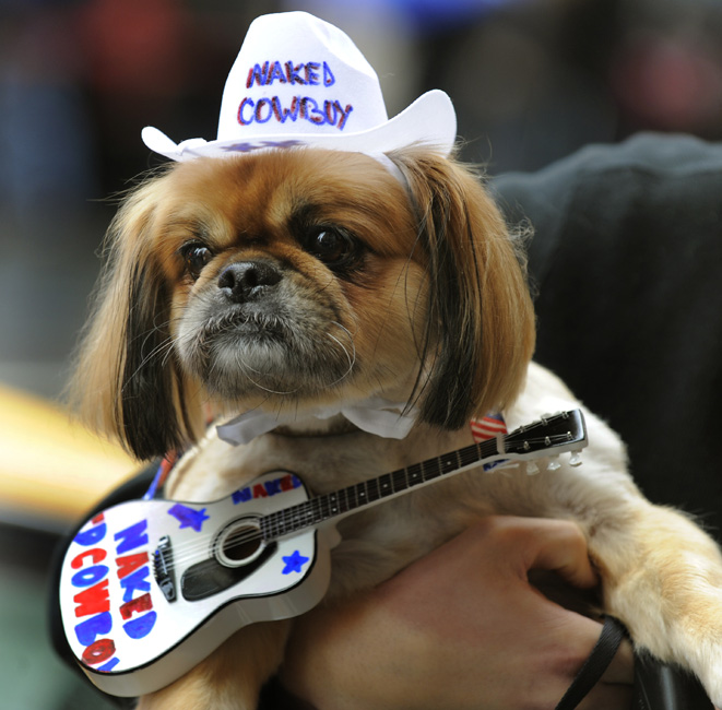 10月18日,在美國紐約時報廣場,眾多小狗在此參加第5屆年度狗狗化妝舞會表演。圖片來源:中國新聞網(wǎng)