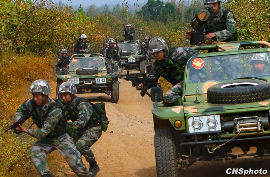 解放軍濟南軍區(qū)“前鋒-2009A”軍事演習,將于10月21日在某合同戰(zhàn)術訓練基地舉行,圖為即將參加演習的空降兵部隊10月20日在進行針對性訓練。這次演習主要是由兵力兵器數(shù)量規(guī)模向信息火力效能聚優(yōu)轉變、指揮的重心由主攻方向上的重點突破向作戰(zhàn)關節(jié)要害的體系毀癱轉變、火力的運用由概略粗放決策向科學精細籌劃轉變、協(xié)同的重點由地面步坦行動向陸空火力協(xié)調轉變、行動的控制由時間位置推進量向效果態(tài)勢達成度轉變、作戰(zhàn)的目的由殲敵奪地向控要制權轉變。 中新社發(fā) 宋吉河 攝