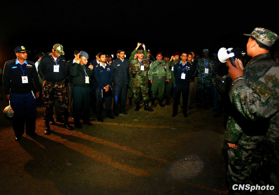 當(dāng)晚國(guó)防大學(xué)防務(wù)學(xué)院、空軍指揮學(xué)院的外軍學(xué)員,以及英國(guó)、以色列、土耳其、巴基斯坦等國(guó)軍事觀察員親臨現(xiàn)場(chǎng)觀摩了后勤保障戰(zhàn)斗準(zhǔn)備、自行榴彈炮占領(lǐng)陣地、裝甲車輛“摸黑”開(kāi)進(jìn)等戰(zhàn)斗要素。圖為參觀后勤保障基地。中新社發(fā) 宋吉河 攝