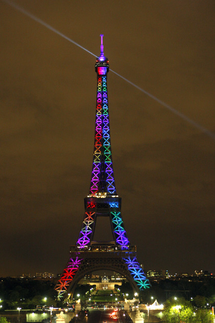 10月22日,法國首都巴黎埃菲爾鐵塔亮起絢麗的燈光,慶祝建成120周年。從當日起至12月31日,埃菲爾鐵塔每晚都會亮起絢麗的燈光。