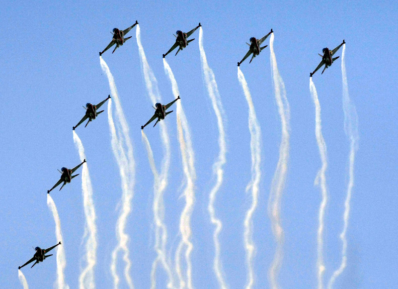 周二(20日),韓國黑鷹特技飛行表演隊(duì)在2009首爾國際航空航天與國防展上進(jìn)行精彩的特技飛行表演。 來源:中國新聞網(wǎng)