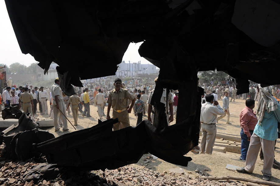 周三(21日)在距離印度首都新德里約80公里的馬圖拉,救援人員在火車相撞現(xiàn)場(chǎng)工作。當(dāng)日早晨,印度一列來自西南部果阿的快運(yùn)列車與一列來自西部梅瓦爾的快運(yùn)列車在此相撞,致使21人喪生、17人受傷。來源:來源:中國(guó)新聞網(wǎng)