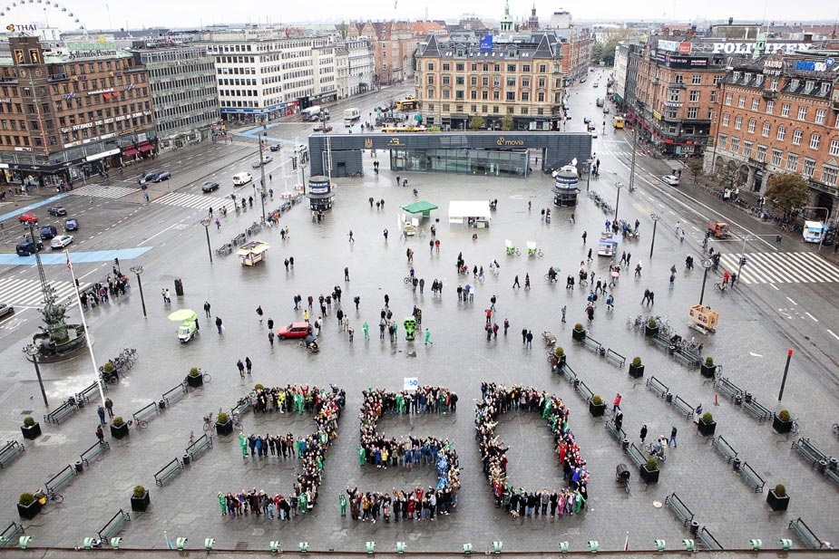 2009年10月24日,當(dāng)日是350全球應(yīng)對(duì)氣候變化行動(dòng)日,世界各地的民眾紛紛用自己的方式來(lái)表示對(duì)全球氣候變化的關(guān)注和擔(dān)憂。圖為丹麥民眾組織的活動(dòng)。