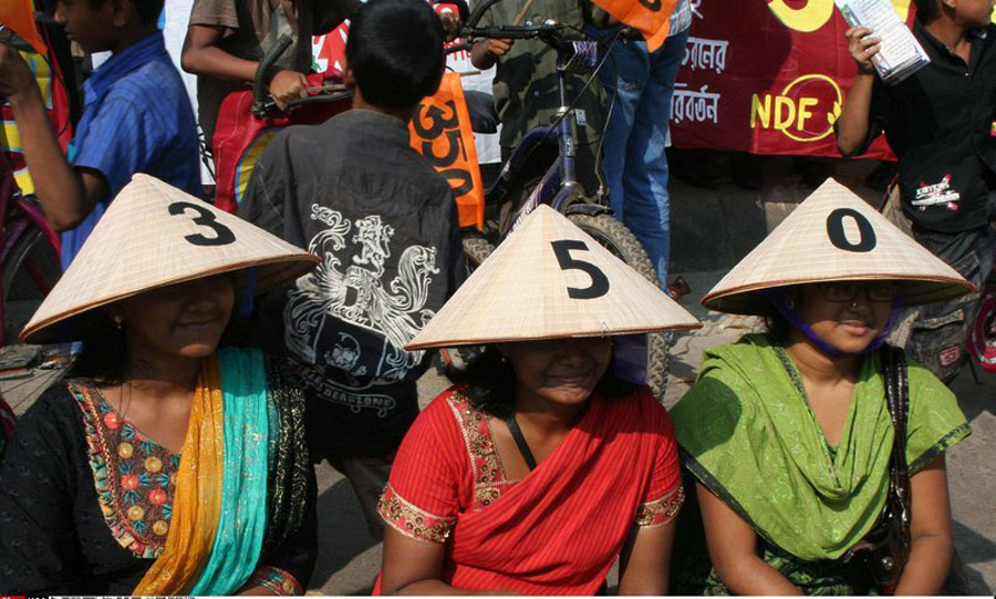 2009年10月24日,當(dāng)日是350全球應(yīng)對(duì)氣候變化行動(dòng)日,世界各地的民眾紛紛用自己的方式來(lái)表示對(duì)全球氣候變化的關(guān)注和擔(dān)憂。圖為孟加拉民眾組織的活動(dòng)。