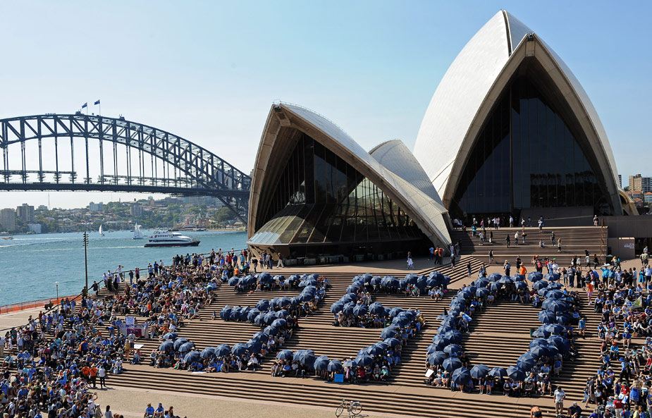 2009年10月24日,當日是350全球應(yīng)對氣候變化行動日,世界各地的民眾紛紛用自己的方式來表示對全球氣候變化的關(guān)注和擔憂。圖為澳大利亞民眾組織活動。