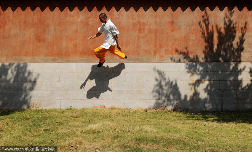 釋理亮平日時常練習(xí)飛檐走壁,他說這也是鍛煉腿部爆發(fā)力的一種方式。 林朝陽/CFP