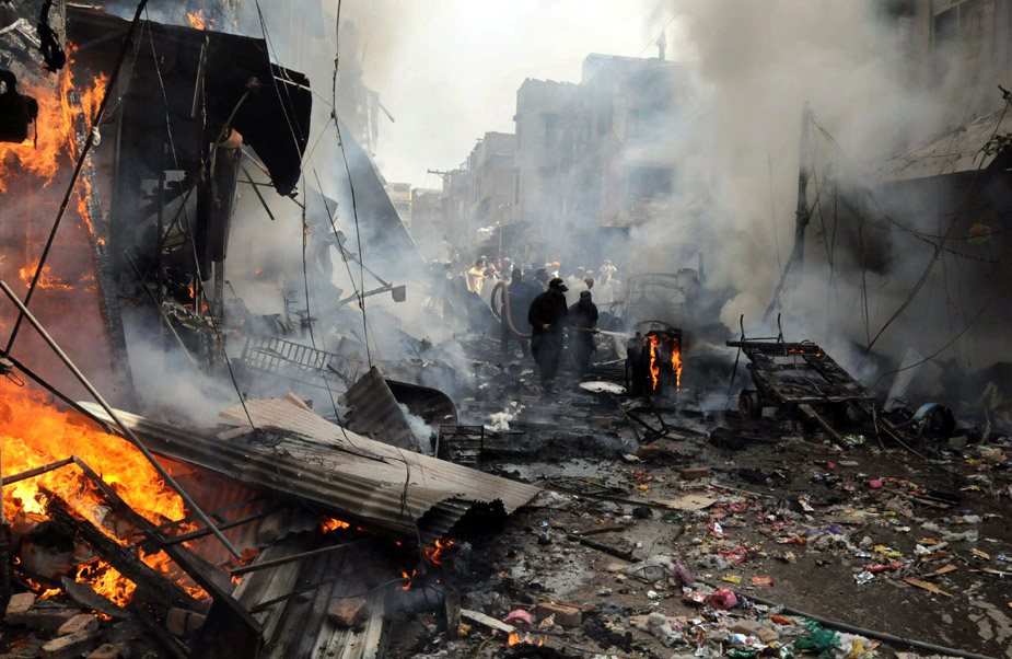 10月28日,巴基斯坦西北部城市白沙瓦一個(gè)人口密集的集市遭汽車炸彈襲擊。圖片來源:中國(guó)新聞網(wǎng)