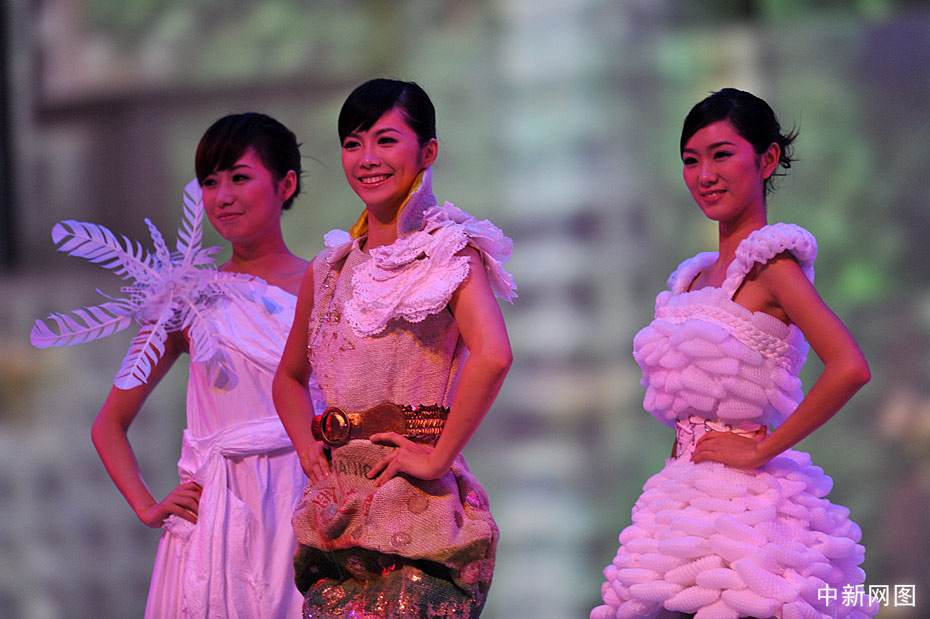 10月31日晚,“2009中華小姐環(huán)球大賽”總決賽上,12名入圍總決賽的佳麗身著各式服裝展現(xiàn)曼妙身姿,此外大賽還設(shè)計了一套“廢品服裝”呼吁環(huán)境保護(hù)。中新網(wǎng)記者 金碩 攝