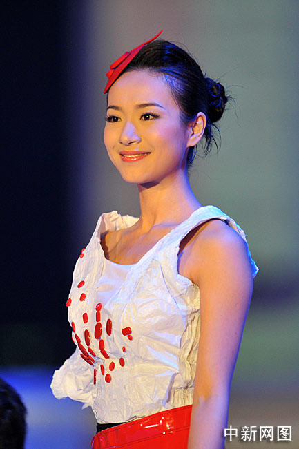 10月31日晚,“2009中華小姐環(huán)球大賽”總決賽上,12名入圍總決賽的佳麗身著各式服裝展現(xiàn)曼妙身姿,此外大賽還設(shè)計了一套“廢品服裝”呼吁環(huán)境保護(hù)。中新網(wǎng)記者 金碩 攝