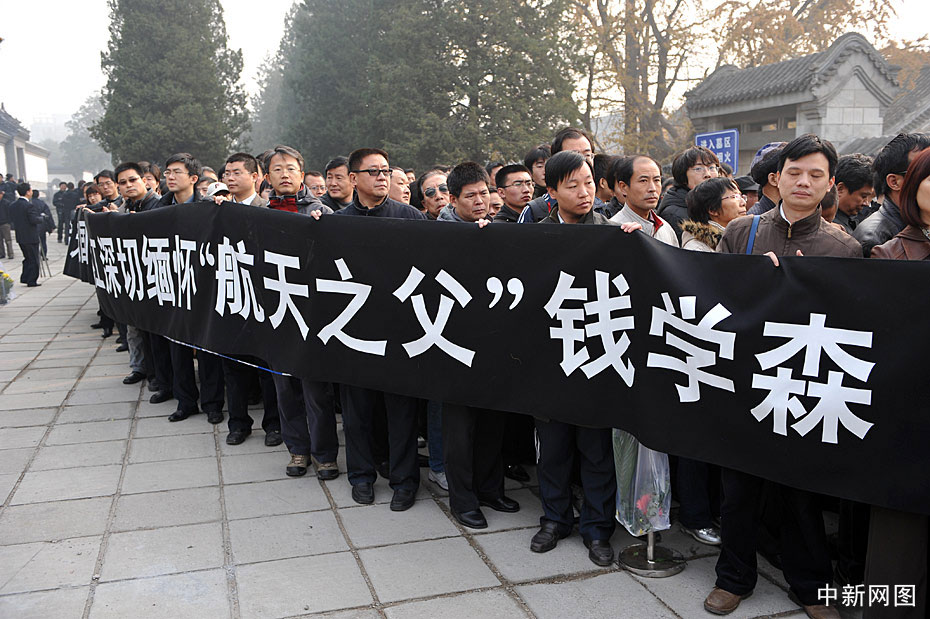 11月6日,“中國(guó)航天之父”錢學(xué)森的追悼會(huì)在北京八寶山舉行。各界民眾自發(fā)趕來為錢老送行。圖片來源:中國(guó)新聞網(wǎng)