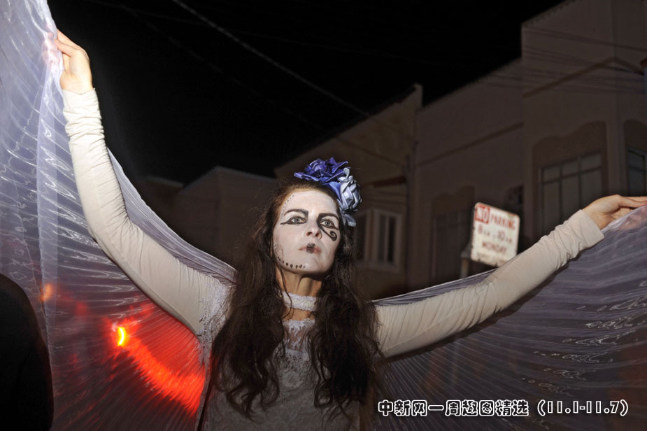 11月2日,美國(guó)舊金山居民扮成鬼怪模樣慶祝“亡靈節(jié)”。>>點(diǎn)擊觀看詳細(xì)內(nèi)容