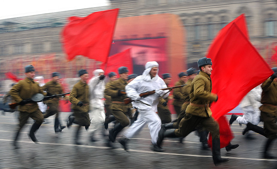11月7日,俄羅斯士兵身穿二戰(zhàn)時期的軍服在莫斯科紅場舉行閱兵閱兵式紀念1941年紅場閱兵。圖片來源:中國新聞網(wǎng)