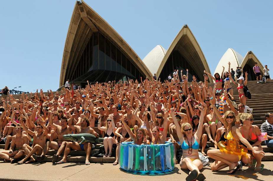 11月12日,約1000人身穿泳裝在悉尼街頭游行,欲打破287人近日在南非創(chuàng)造的最大規(guī)模泳裝游行的世界紀錄。