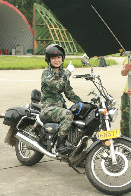 11月12日,北京,為配合慶祝人民空軍成立60周年活動,由八一電影制片廠著名導(dǎo)演寧海強擔(dān)綱執(zhí)導(dǎo),黃奕主演的軍事動作大片電影《殲十出擊》即將上映。在這部大量表現(xiàn)戰(zhàn)斗機空戰(zhàn)場面的軍事題材電影里,黃奕在片中的主要工作是檢查維護殲十戰(zhàn)斗機的機械運轉(zhuǎn),保證安全飛行,就是通常所說的機務(wù)工作。穿上正統(tǒng)的空軍女上尉軍服,肩扛一杠三星,英姿颯爽的黃奕顯得無比自豪。