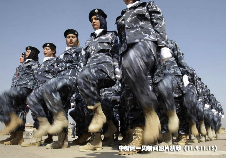 9日(周一),美國培訓的新一批伊拉克警務人員,經過專定的警察科目培訓后正式畢業(yè),其中還包括50名女警察。她們將參加巴格達的警察部隊。圖片來源:中國新聞網