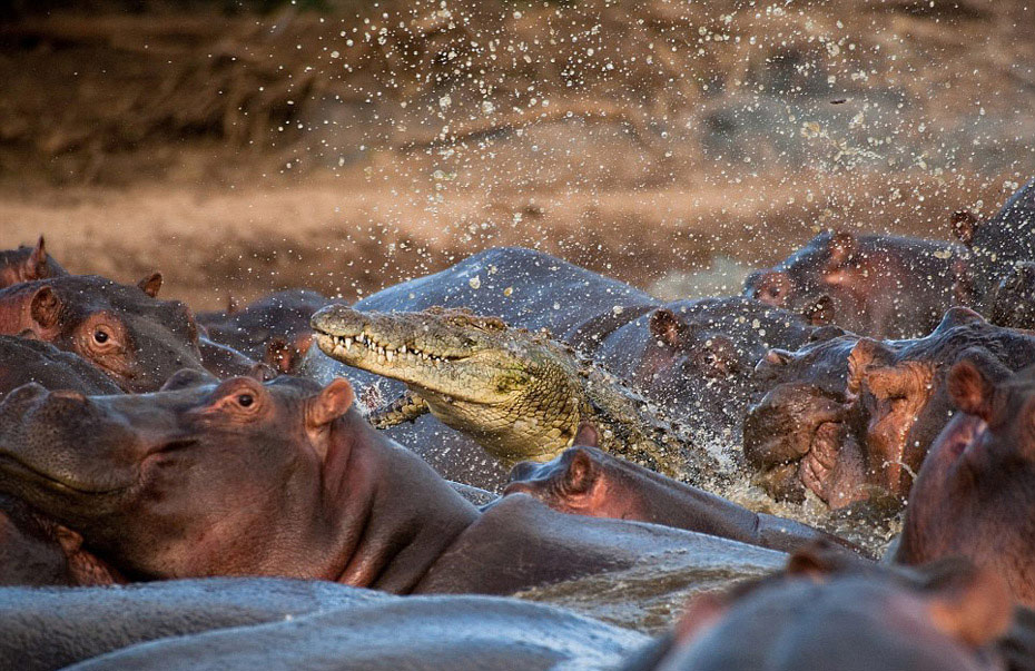 45歲的捷克野生動物攝影師Vaclav Silha日前在坦桑尼亞塞倫蓋蒂國家公園里拍攝到了非常令人震撼的場面。當時,一條鱷魚悄悄混入了一群正在河里洗澡的河馬中,但由于與一頭帶著小河馬的河馬媽媽太過接近,它很快就被敏感的母河馬發(fā)現(xiàn)。憤怒的河馬們立刻對它發(fā)起了猛烈地攻擊,這條冒失的鱷魚很快死于非命。這組照片中的一張最早刊登于英國廣播公司(BBC)《野生動物》雜志的11月號。