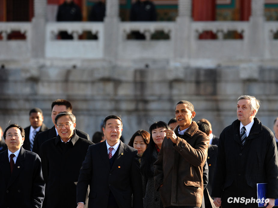 11月17日,正在中國(guó)進(jìn)行國(guó)事訪問(wèn)的美國(guó)總統(tǒng)奧巴馬一行參觀北京故宮。圖片來(lái)源:中國(guó)新聞網(wǎng)