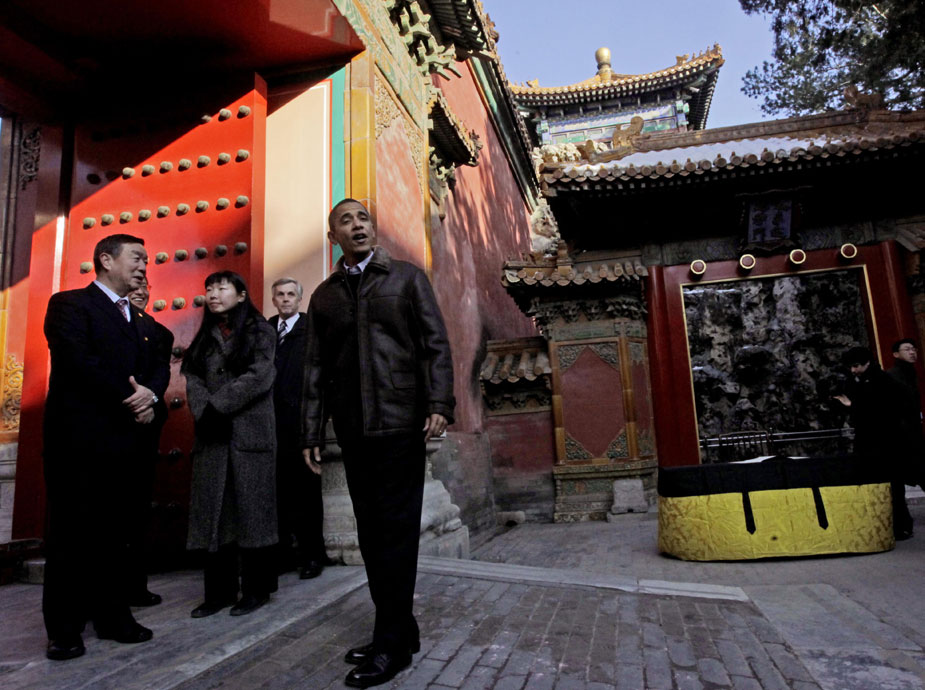11月17日,正在中國(guó)進(jìn)行國(guó)事訪問的美國(guó)總統(tǒng)奧巴馬一行參觀北京故宮。