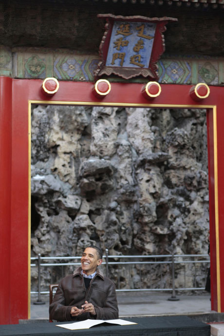 11月17日,正在中國進(jìn)行國事訪問的美國總統(tǒng)奧巴馬一行參觀北京故宮。