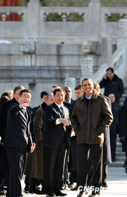 11月17日,正在中國(guó)進(jìn)行國(guó)事訪問(wèn)的美國(guó)總統(tǒng)奧巴馬一行參觀北京故宮。圖片來(lái)源:中國(guó)新聞網(wǎng)