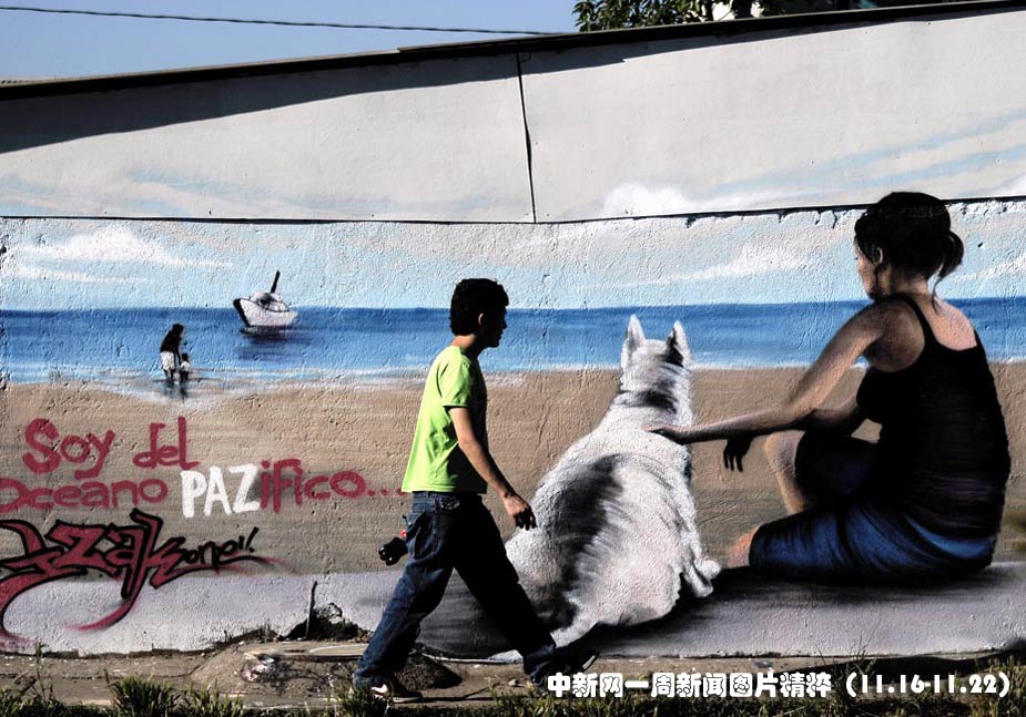 11月15日,智利圣地亞哥近千名藝術(shù)家繪制了1800米長(zhǎng)的涂鴉墻,打破了吉尼斯世界紀(jì)錄。圖片來(lái)源:中國(guó)新聞網(wǎng)