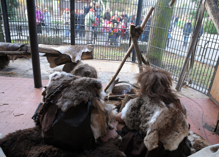 11月27日,波蘭首都華沙動(dòng)物園里,一男一女兩個(gè)志愿者扮成原始洞穴人向參觀者進(jìn)行展示。該動(dòng)物園想通過(guò)這項(xiàng)為期一周的活動(dòng),提醒參觀者注意人類(lèi)也是動(dòng)物界的一部分。