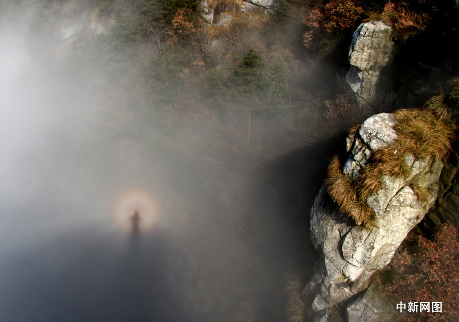 11月29日,受北方弱冷空氣影響,廬山出現平流云、佛光奇觀,佛光持續(xù)了近二個多小時。當日,整個廬山被濃濃的云霧所籠罩,若隱若現,宛如仙境。(胡國林 陳飛)